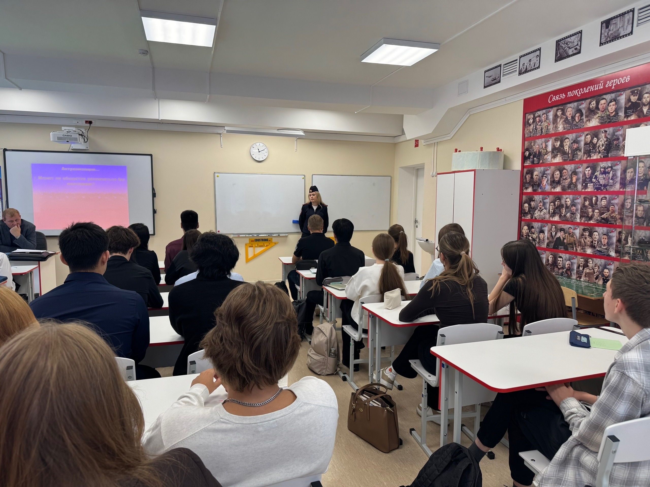 В рамках акции "Внимание, дети! Детям безопасные дороги!" в гимназии прошло познавательное мероприятие, на котором ребята встретились с Синченко Ю.В., ВРИО инспектора по пропаганде ПДД отдела Госавтоинспекции ОМВД России по городу Лангепасу. Инспектор рассказала о том, какие опасности могут подстерегать на дороге ("дорожные ловушки"), как правильно пользоваться самокатами, и почему питбайк – это, прежде всего, спортивный инвентарь. Особое внимание было уделено тому, как безопасно переходить дорогу в городе. Старшеклассники не упустили возможности задать ВРИО инспектору вопросы о получении водительских прав: где лучше учиться и сколько сейчас стоит обучение. Уважаемые родители! Не оставляйте без внимания вопросы безопасности дорожного движения. Проводите с детьми беседы, напоминайте им правила и сами будьте примером ответственного поведения на дороге!