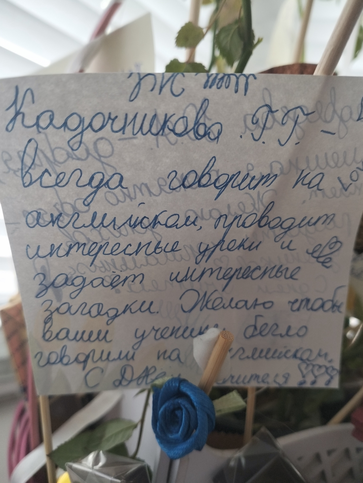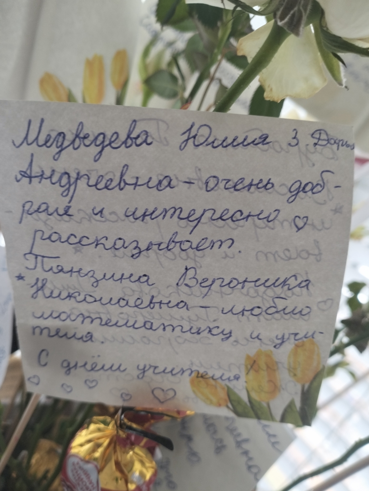 Сегодня ваш праздник, и мы не можем не выразить вам свою безграничную благодарность. Спасибо вам за то, что превращаете скучные уроки в увлекательные путешествия, за терпение и поддержку, за вашу безграничную доброту, за то, что верите в нас больше, чем мы сами.