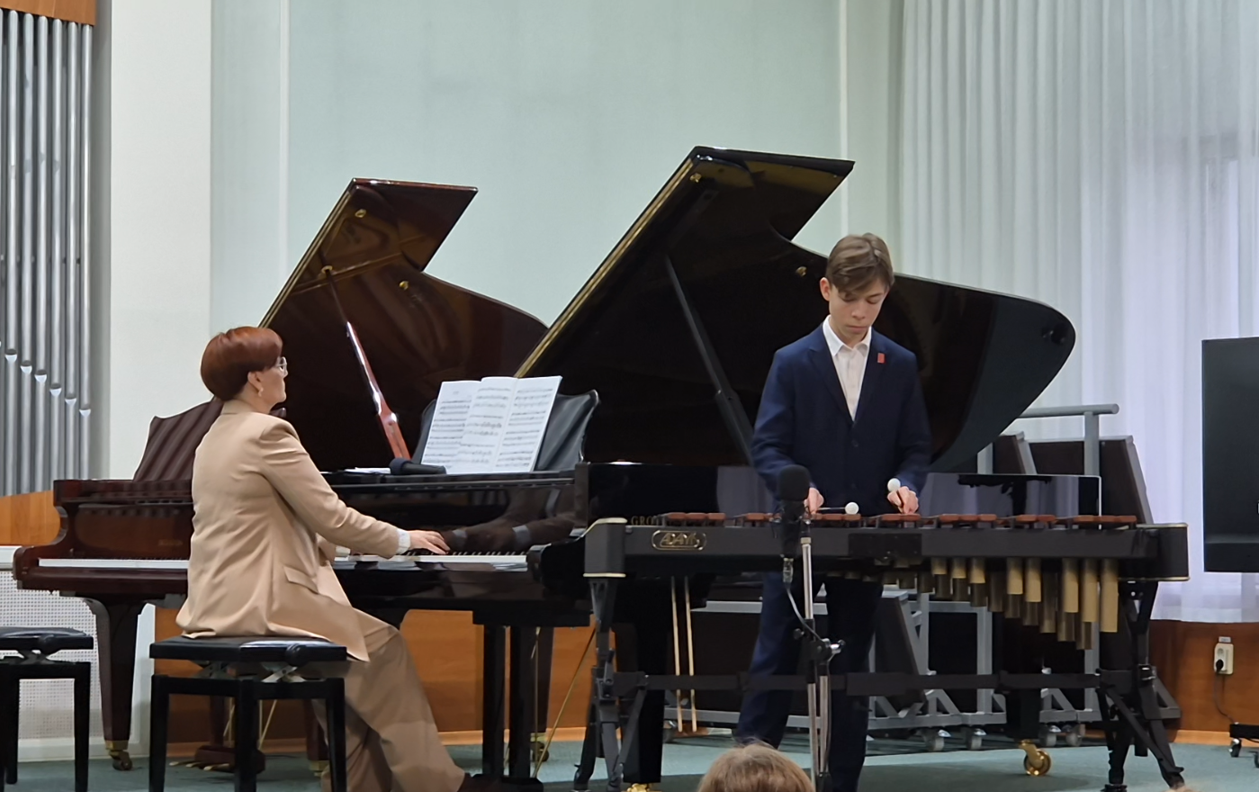 Под профессиональный аккомпанемент Анастасии Давлетовой Арсений Фесенко (ксилофон) виртуозно исполнил два разноплановых произведения: изящную «Мазурку» Петра Ильича Чайковского и зажигательную увертюру из оперы «Кармен» Жоржа Бизе. А Тимофей Бобров погрузил зал в атмосферу легкого джаза, исполнив знаменитую композицию Пола Дезмонда «Попробуем на пять».