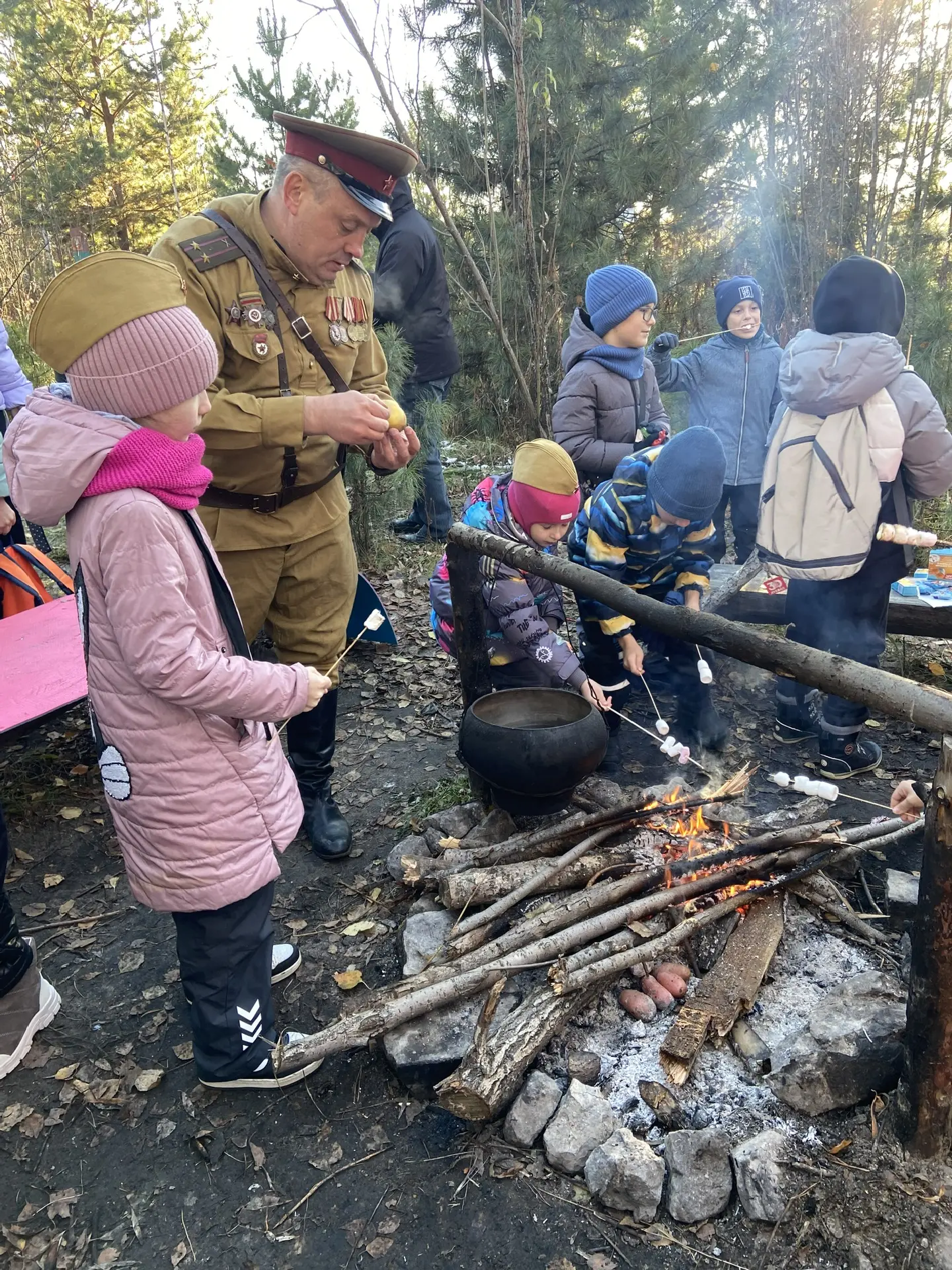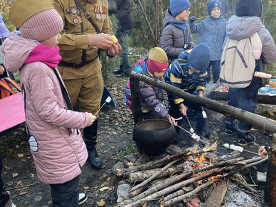 Виктор Леонидович гостеприимно накормил всех картошкой, сваренной на костре, напоил чаем из самовара. Дети, родители, бабушки и дедушки дружно спели «Катюшу».