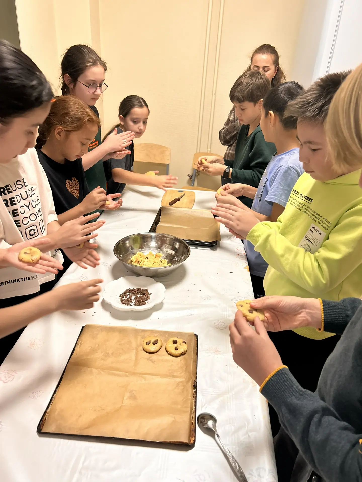 Под чутким руководством педагогов и при активном участии мам, пятиклассники с огромным энтузиазмом принялись за работу. Ребята с увлечением замешивали тесто, раскатывали его и вырезали забавные фигурки. Особое внимание было уделено украшению печенья: каждый ученик стремился выразить свои эмоции, создавая на печеньках веселые шоколадные смайлики.