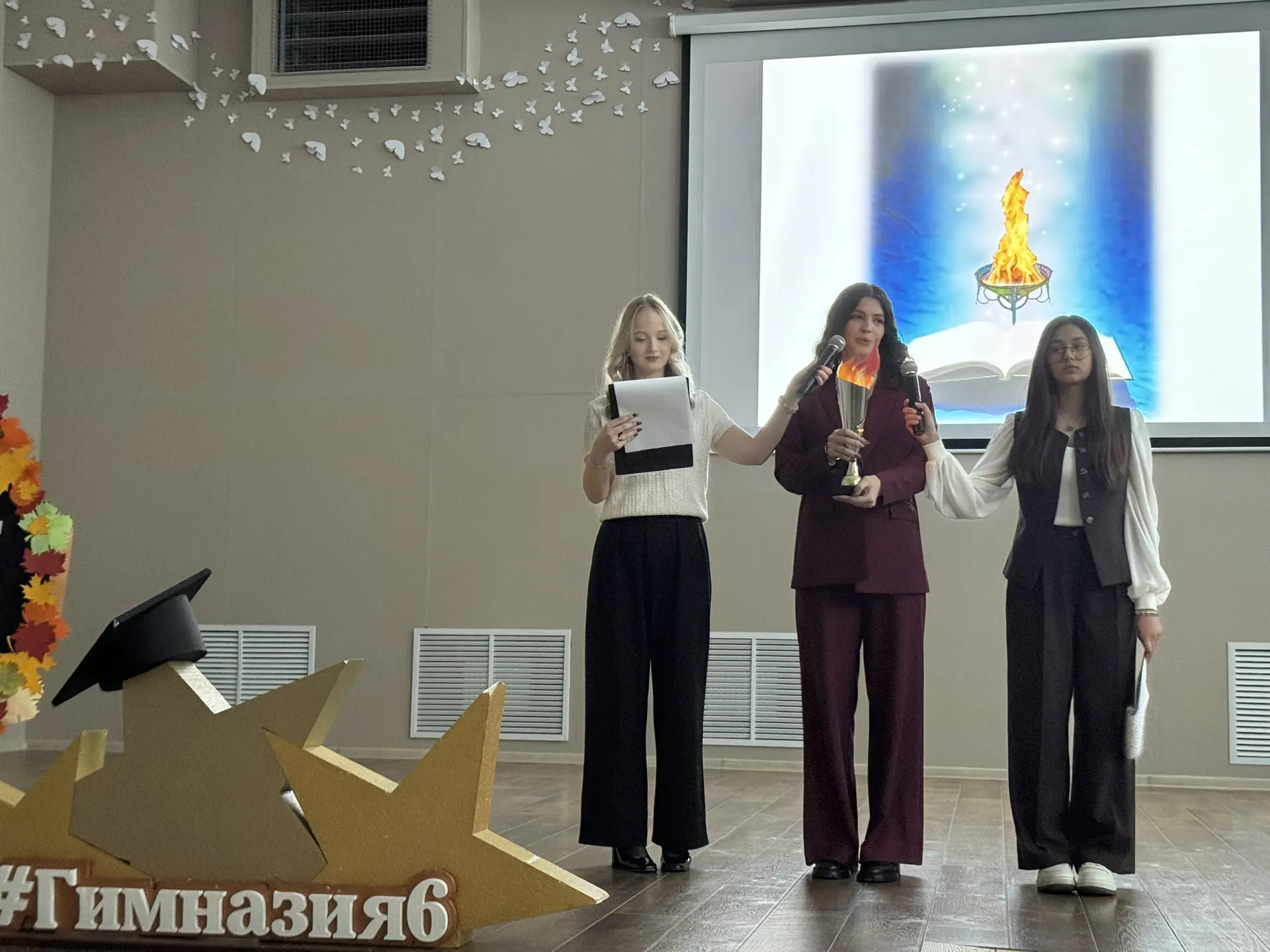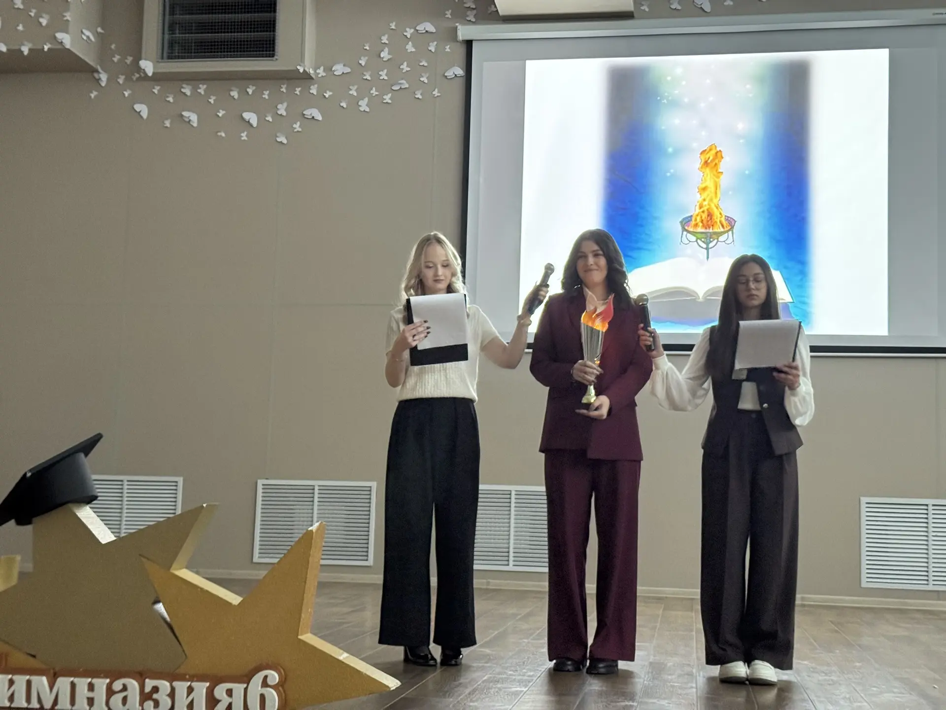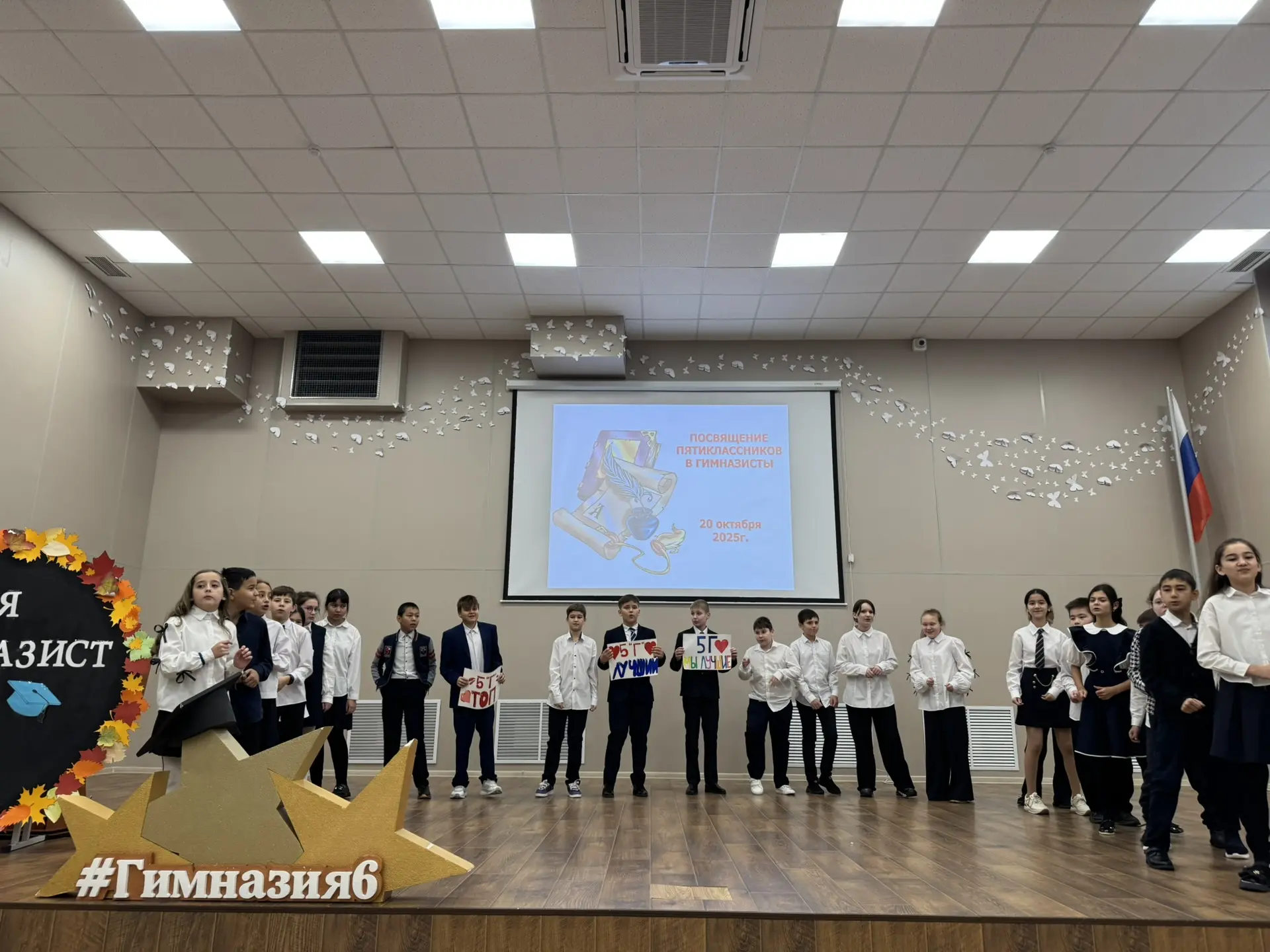 По уже сложившейся традиции, в середине октября в гимназии проходит торжественное мероприятие, посвящённое дню гимназий и лицеев. 20 октября пятиклассников торжественно посвящали в гимназисты. Каждый класс показал свою визитную карточку. На сцене для всей параллели пятых классов с напутственным словом выступила Белоусова Анна, обучающаяся девятого класса и избранный президент Гимназической Республики. Анна зажгла символичный «огонь знаний», зачитала для ребят клятву гимназиста и поздравила всех присутствующих с таким важным событием, особо подчеркнув, что они теперь – члены единой и дружной команды гимназии, в которую входят не только ученики, но и педагоги, и родители. Она пожелала ребятам, чтобы дружба и чувство товарищеской общности стали бы непреходящей ценностью в их жизни, и выразила уверенность, что они все будут с честью и достоинством нести гордое звание «гимназист».