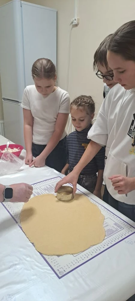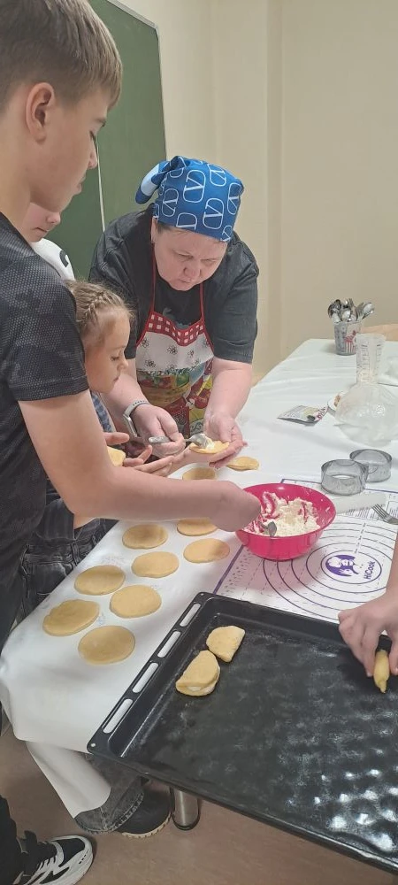 Ребята с восторгом наблюдали за каждым движением опытных рук, перенимали секреты приготовления теста и начинки, а затем, под чутким руководством Марии Анатольевны, приступили к самому ответственному этапу – формированию сочников.