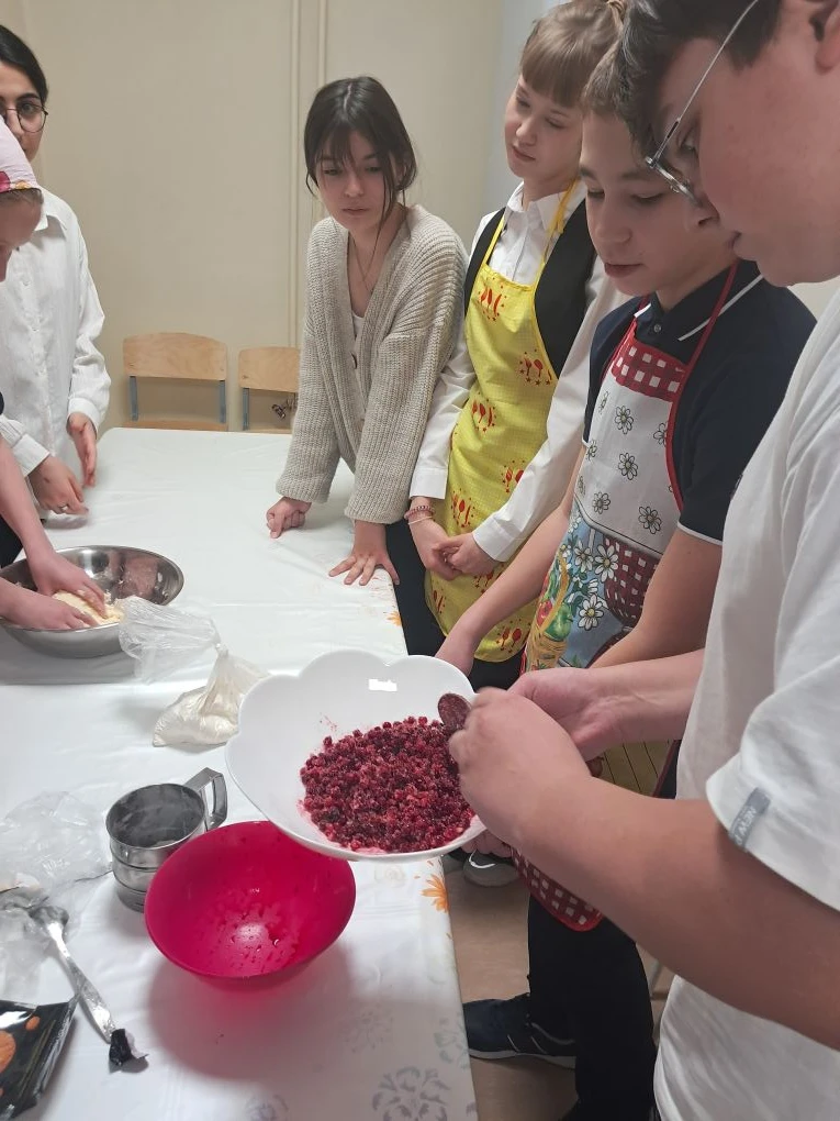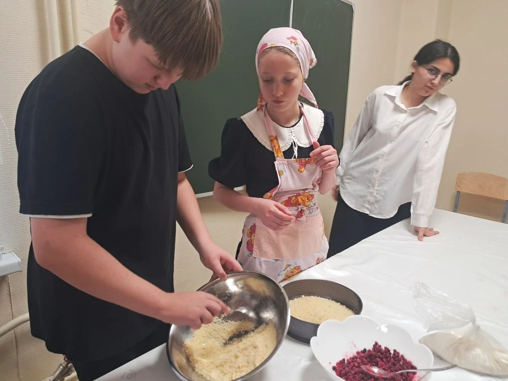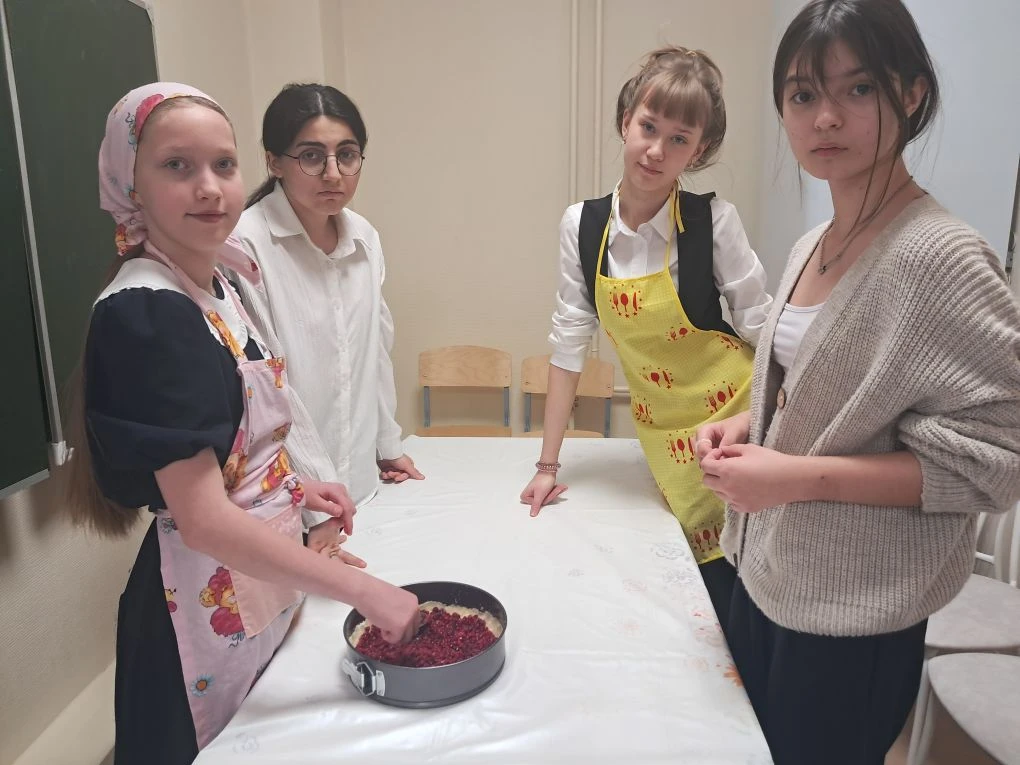 В процессе приготовления пирога ученики говорили о том, как традиционные блюда народов Севера постепенно вошли в нашу повседневную жизнь. Многие семьи используют в своём рационе дикоросы, готовят блюда из рыбы и дикого мяса, используя рецепты, которые передавались из поколения в поколение.