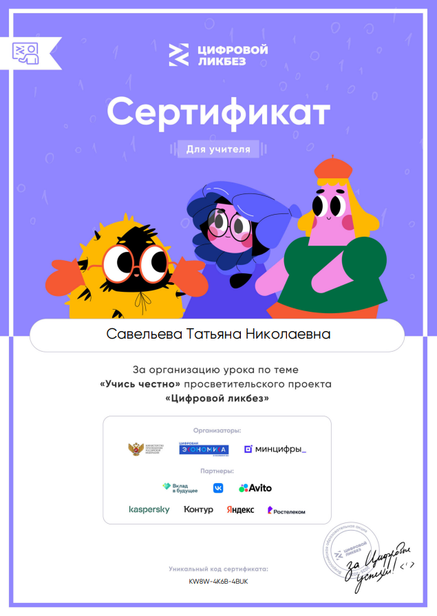 В наши дни цифровые технологии стали неотъемлемой частью жизни каждого школьника. Но важно не только уметь пользоваться гаджетами, но и знать правила безопасности в виртуальном мире. Ученики 2-в класса под руководством классного руководителя Савельевой Татьяны Николаевны сделали большой шаг в этом направлении, приняв участие в просветительском проекте «Цифровой ликбез» https://digital-likbez.datalesson.ru/