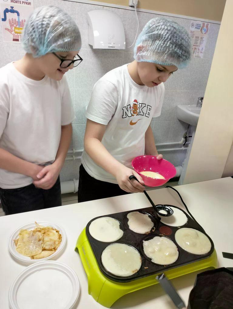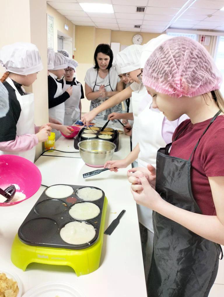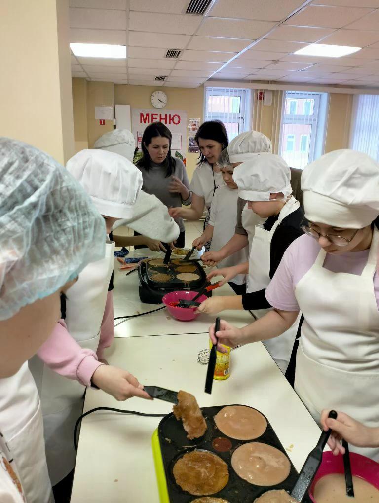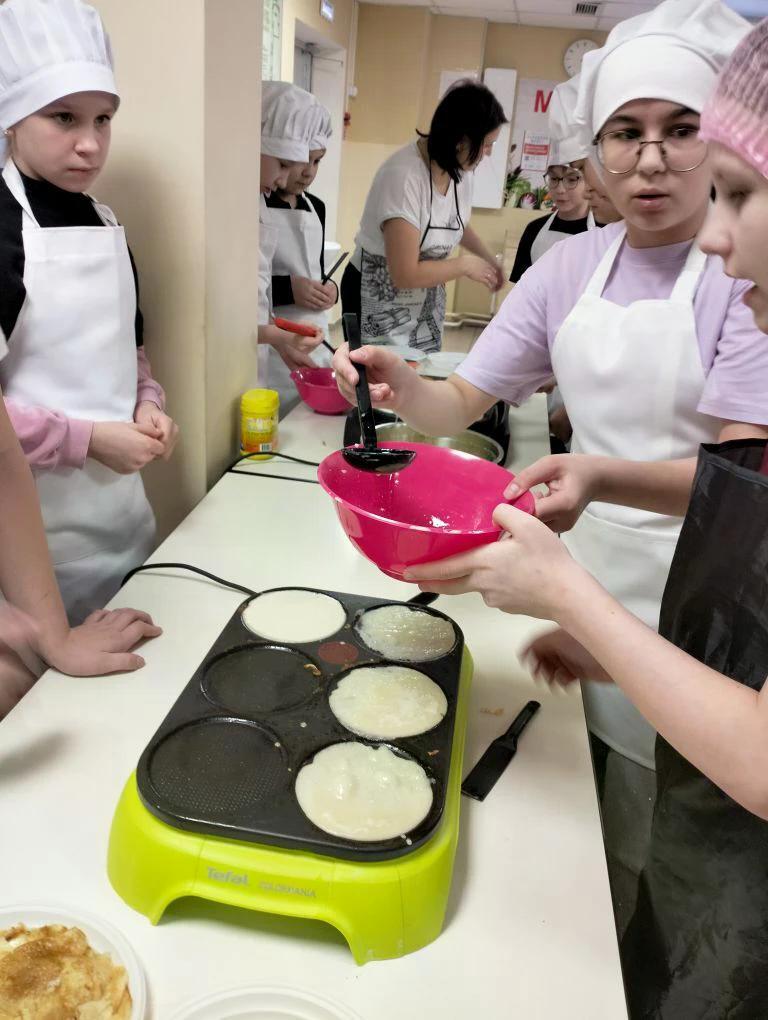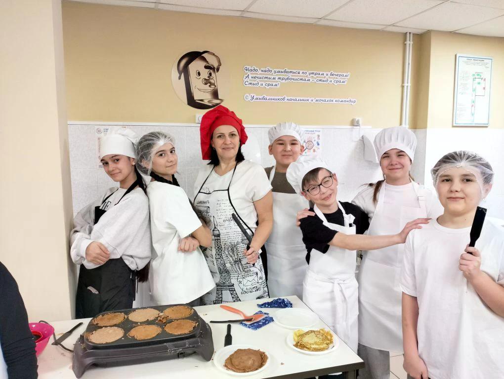 Наши ученики не только наблюдали процесс изготовления традиционных блюд, но и сами принимали активное участие в приготовлении праздничных лакомств. Они освоили рецептуры классических блинов, попробовав себя в роли начинающих кулинаров. Особое удовольствие доставило создание оригинальных десертов — шоколадных блинов с добавлением сгущёнки, клубничного варенья и знаменитого итальянского шоколада Nutella.