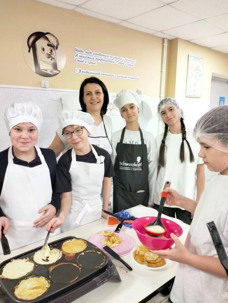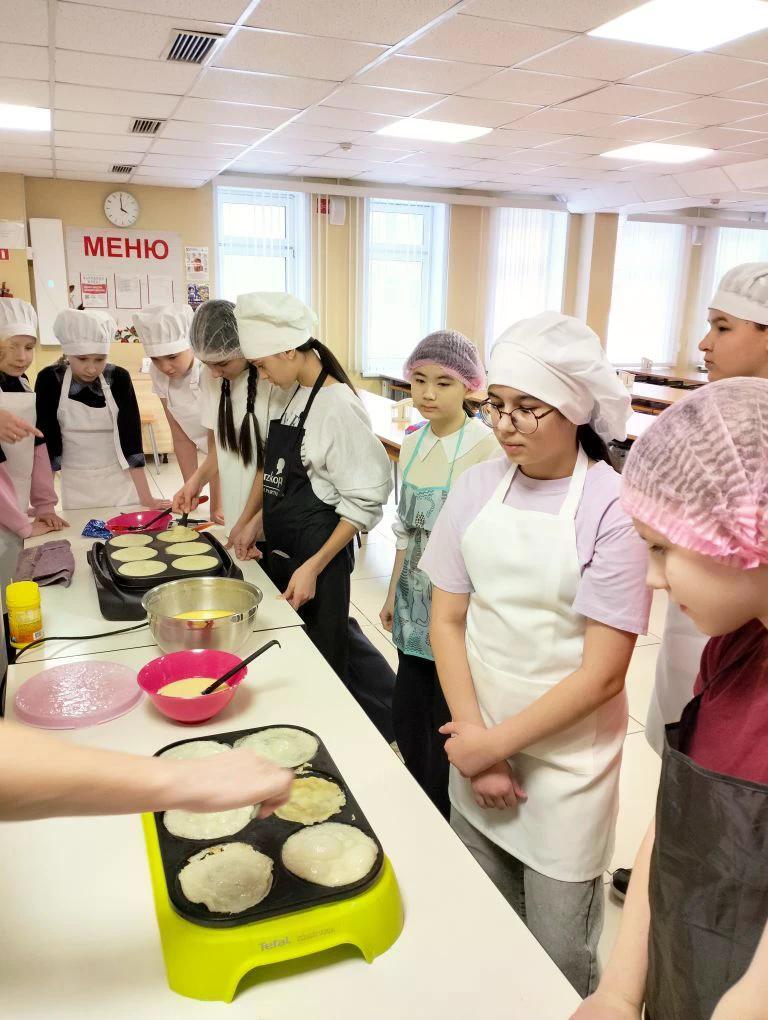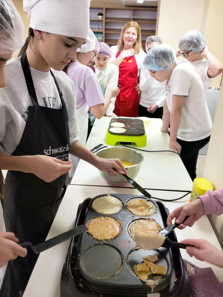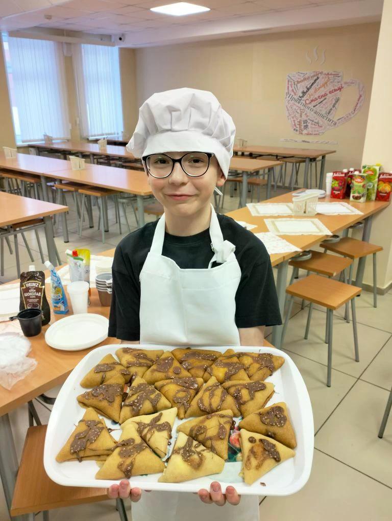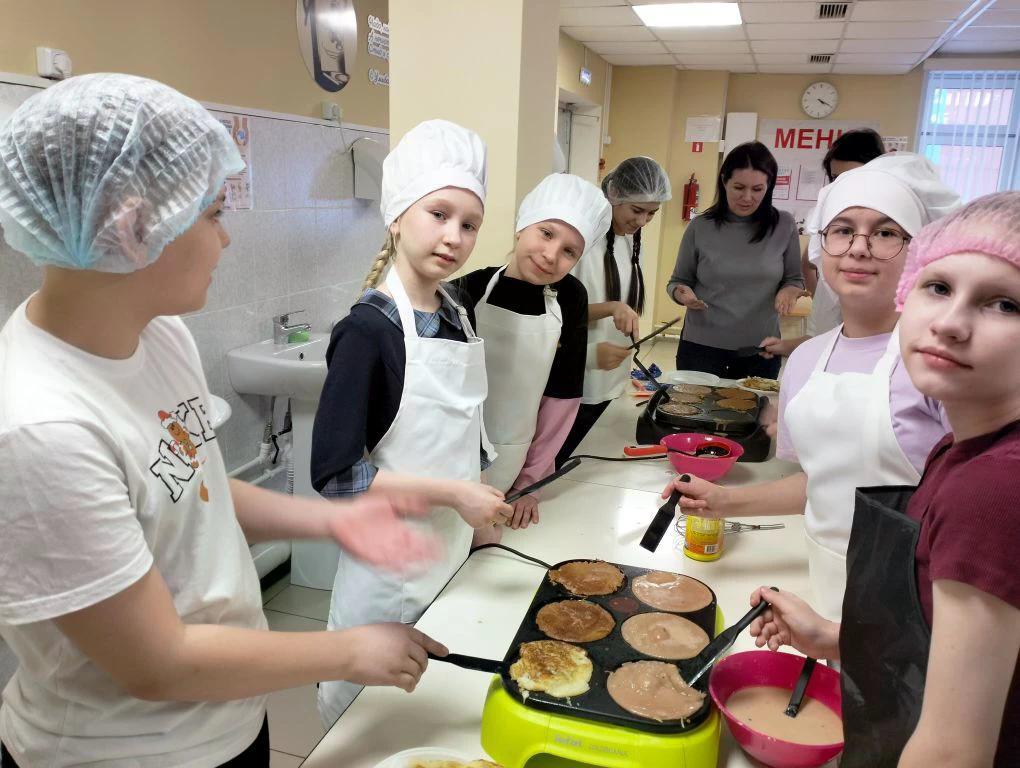 Наши ученики не только наблюдали процесс изготовления традиционных блюд, но и сами принимали активное участие в приготовлении праздничных лакомств. Они освоили рецептуры классических блинов, попробовав себя в роли начинающих кулинаров. Особое удовольствие доставило создание оригинальных десертов — шоколадных блинов с добавлением сгущёнки, клубничного варенья и знаменитого итальянского шоколада Nutella.