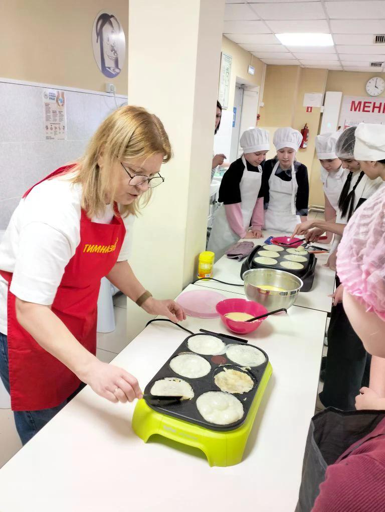 Классный руководитель Кадочникова Гульшат Гумеровна удивила гостей настоящим гастрономическим шоу, предложив блины в необычном исполнении — в стиле «русских роллов». Гостеприимная Наумец Лилия Владимировна порадовала участников своим фирменным рецептом блинов с творожно-шоколадной начинкой.