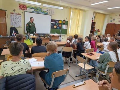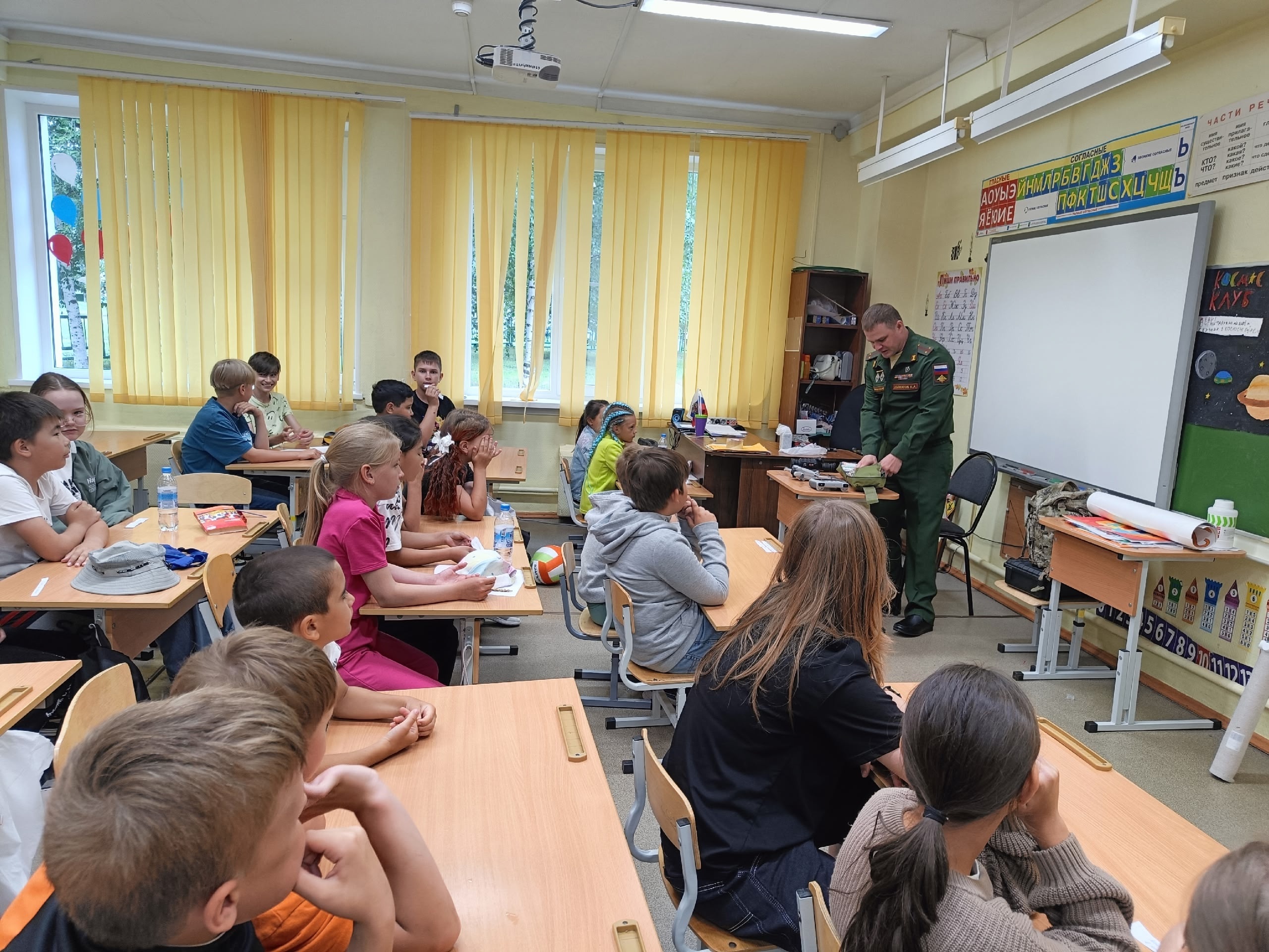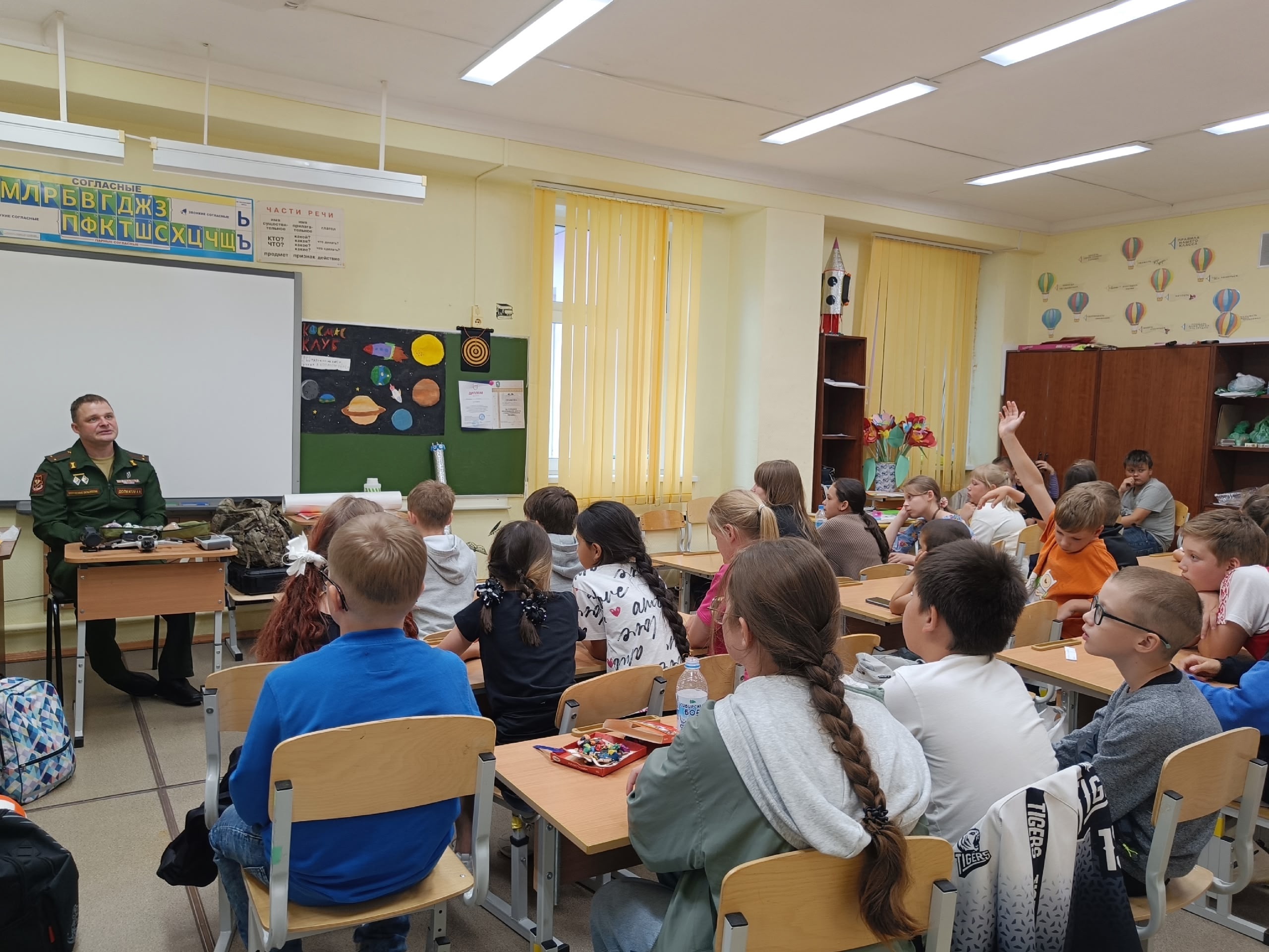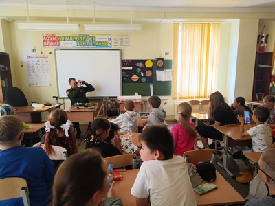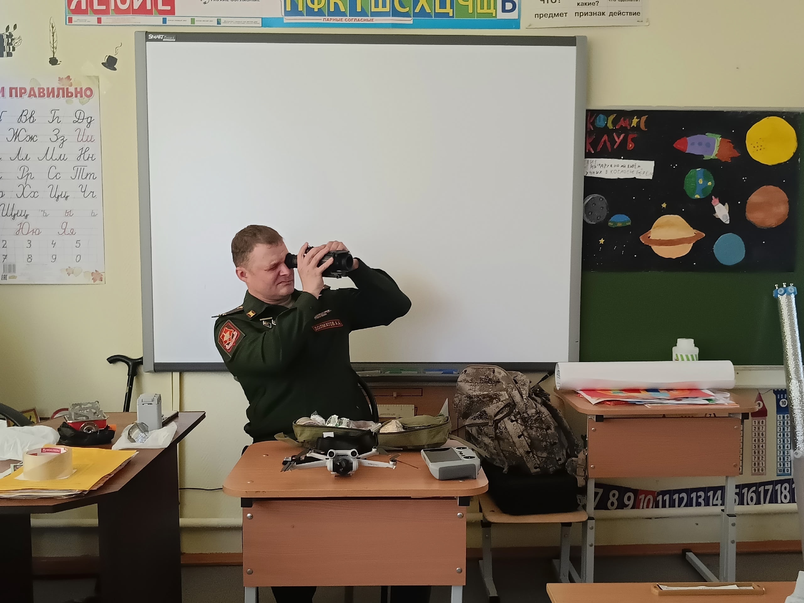 Он рассказал о своем опыте на передовой и подробно объяснил, что содержится в аптечке второго эшелона — важной части снаряжения каждого бойца. Ребята с увлечением рассматривали тепловизор, который принес с собой А. Долматов, и узнали, как он работает.