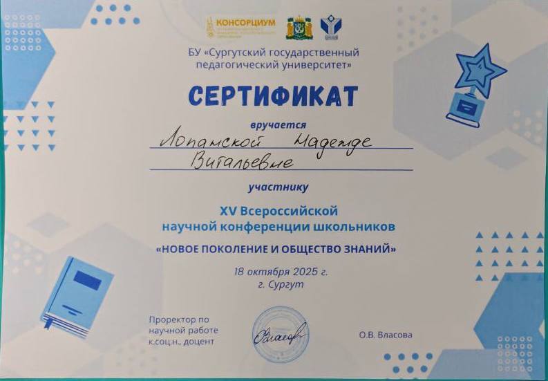 С радостью сообщаем, что наши талантливые ученицы Лопанская Надежда и Буч Милена успешно прошли заочный этап XV Всероссийской конференции школьников «Новое поколение и общество знаний»!
